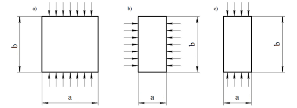 Существуют известные теоретические решения для определения критических напряжений в пластинах [4, 6]. Важным моментом здесь является направление действия сжимающей нагрузки (вдоль короткой стороны или вдоль длинной).