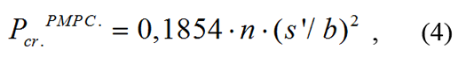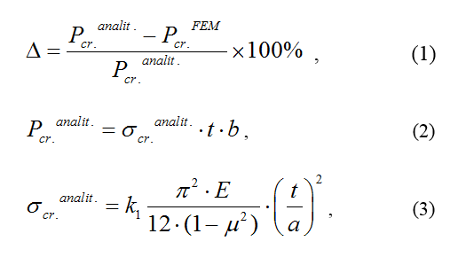 Критическая нагрузка сравнивалась с результатами, полученными по формуле РС для расчета критических напряжений пластин: