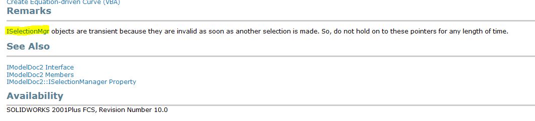 swSelMgr = swDoc.SelectionManager