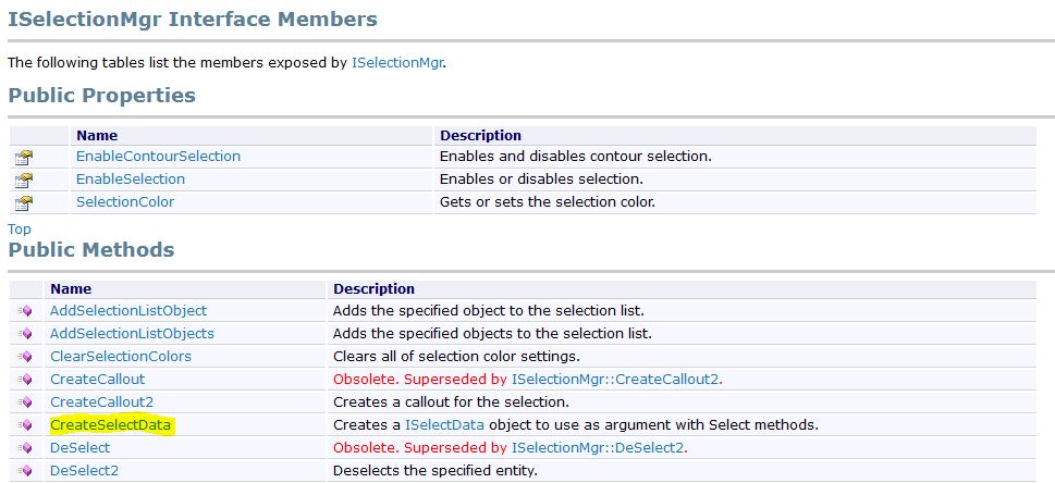 У интерфейса выделенных объектов найдём метод, который используется в качестве аргумента при выборе объектов. Для этого последовательно переходим по ссылкам: