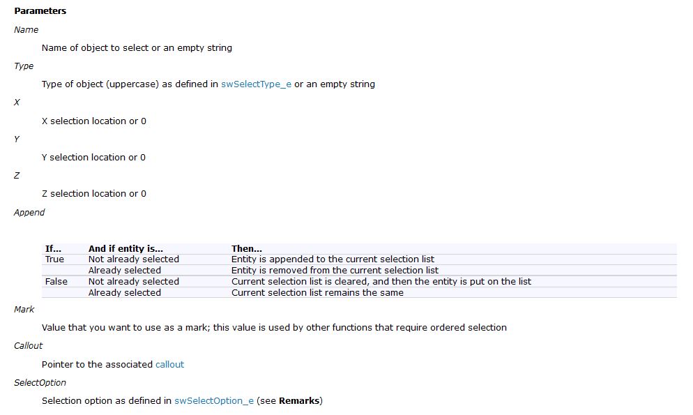 Запишем:selBool = swDoc.Extension.SelectByID2("Спереди", "PLANE", 0, 0, 0, False, 0, VT_DISPATCH, 0)