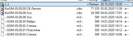 Все файлы начинающиеся с ~$ - временные. Они появляются в процессе работы программы, причем это временные файлы от 3D деталей формата m3d. Закруглите если не верите.