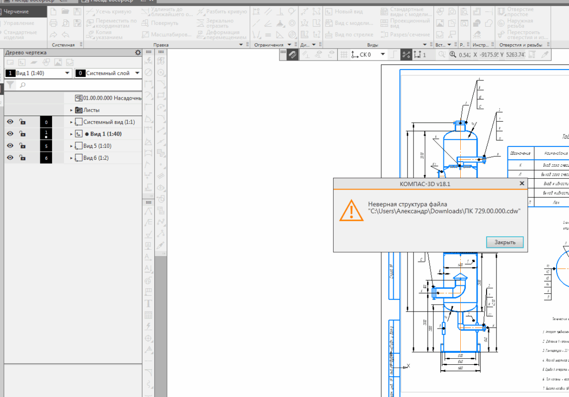 Чертеж компрессора в компасе 18.1 не открывается, как и сп для поршневой группы. в версии 16 тоже. остальные чертежи открываются. это защита? Пишет неверная структура фаила.
