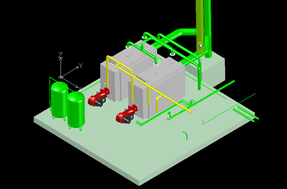 3D модель файла не соответствует описанию. Отсутствуют описанные узлы котельной системы R1 - R11. Нет металлоконструкций. Также отсутствуют схемы. Присутствуют только какие- то примитивные модели.