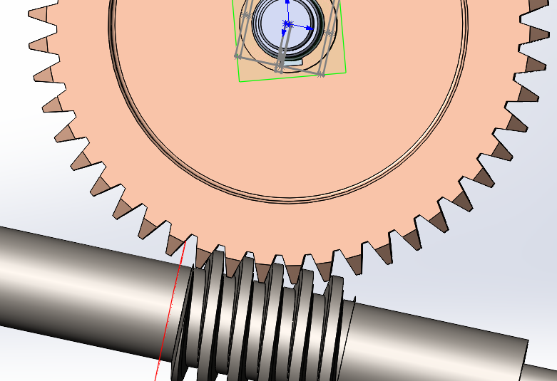 В общем зубья червяка пересекаются с колесом ибо у колеса зубья неправильно созданы, максимально по простому. Зубья колеса прямые, и не имеют угла