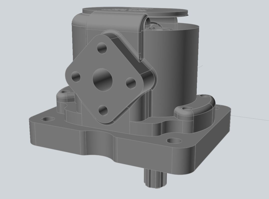 Массогабаритная 3D модель с присоединительными размерами шестерёнчатого насоса НШ-10 .