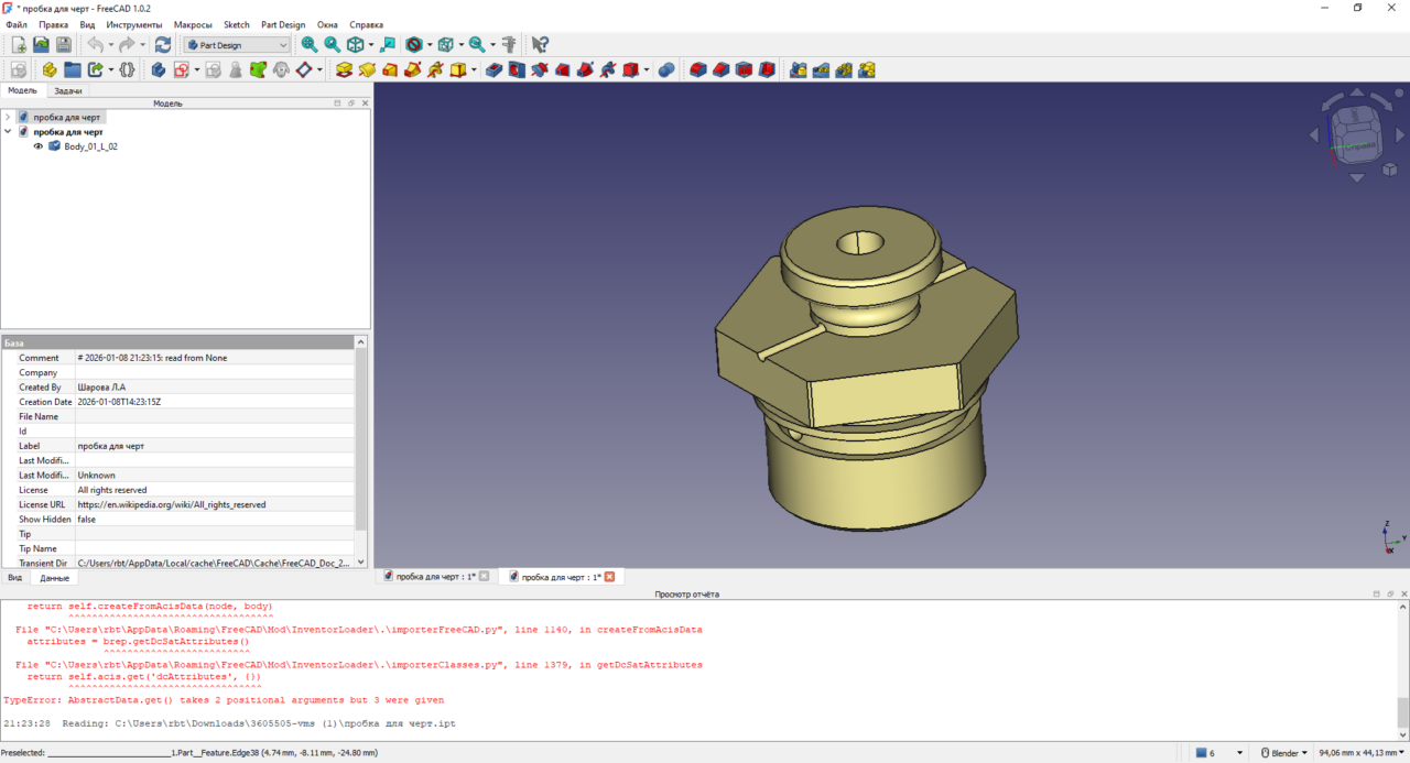 Здравствуйте! Файл открывается, размеры соответствуют. Скажите пожалуйста почему нет резьбы на данной детали?