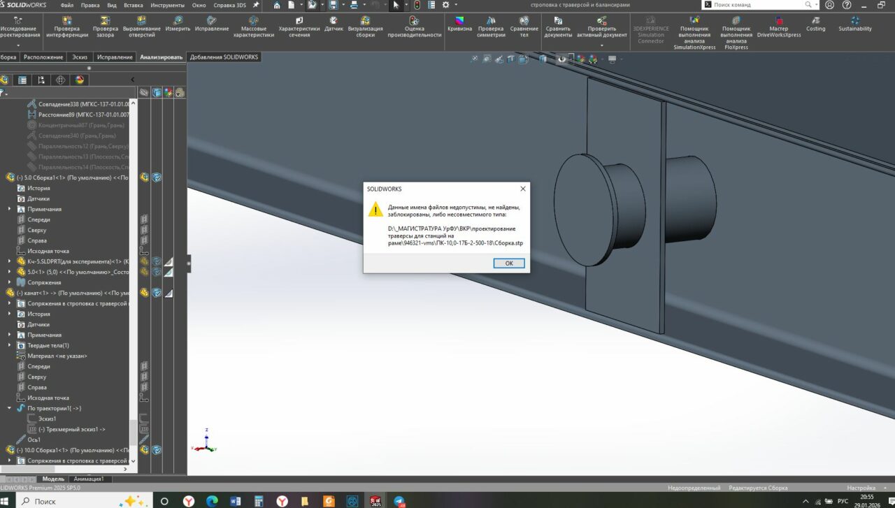 Извлеките файл Сборка.stp в корень диска, например пусть будет вот так D:\Сборка.stp (без лишних папок и путей, прямо в корень диска). И попробуйте еще раз.