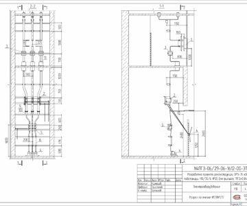 Планы и разрезы ячеек РУ-6 кВ ПС 110/35/6 Пикалево