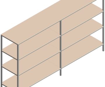 Стеллаж для гаража двухсекционный. Раскрой сортамента в спецификации, раскрой полок отдельным чертежом.