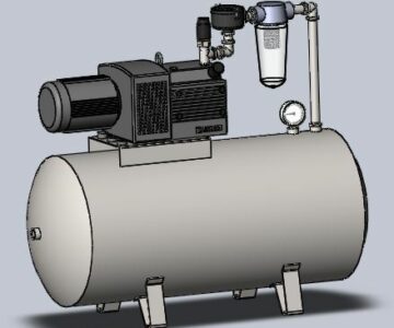 Вакуумная установка на базе безмаслянного роторно-пластинчатого насоса Becker KVT 3.60. Мощность 2,4 кВт; Мин. остаточное давление 100 мбар; частота вращения 1440 об/мин. Объем ресивера 300 л.