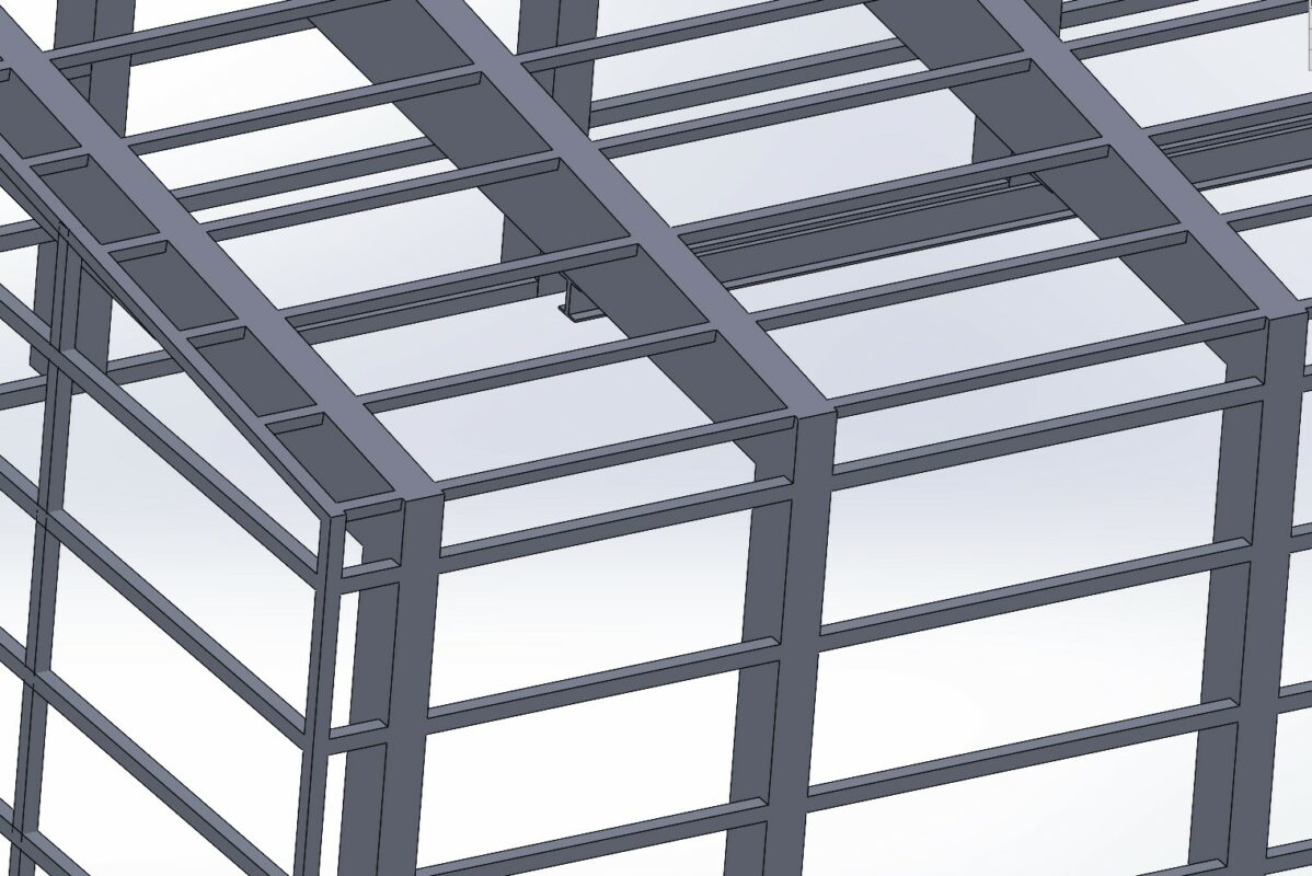 Модель каркаса здания 2 пролета по 24 м, длиной 100 м, с административной частью