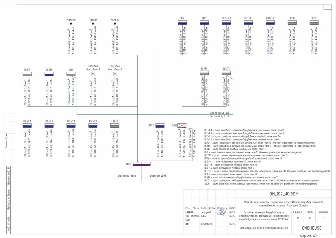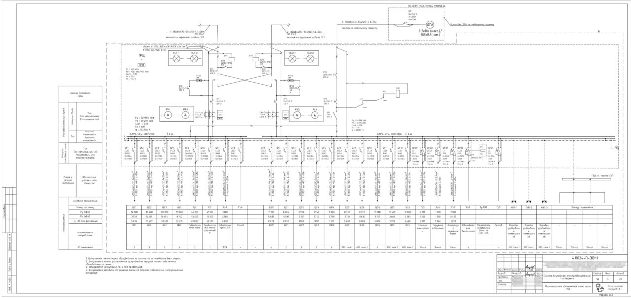 — разработка однолинейной схемы распределительных щитов электроснабжения для любых видов объектов визуализация;