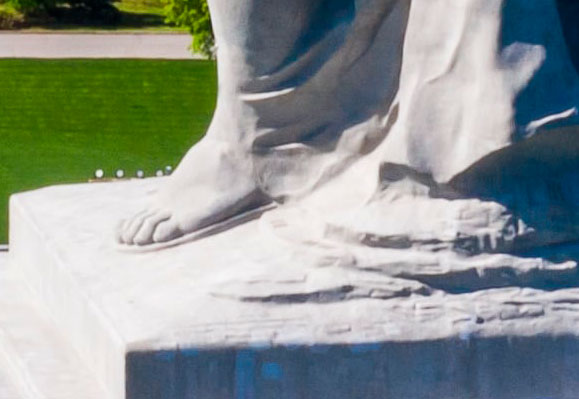 Да. Интересно. Есть видео "Виртуальная экскурсия. Монумент Родина-мать. Мамаев курган. Волгоград" там явно видно что подошва есть, но обуви нет.