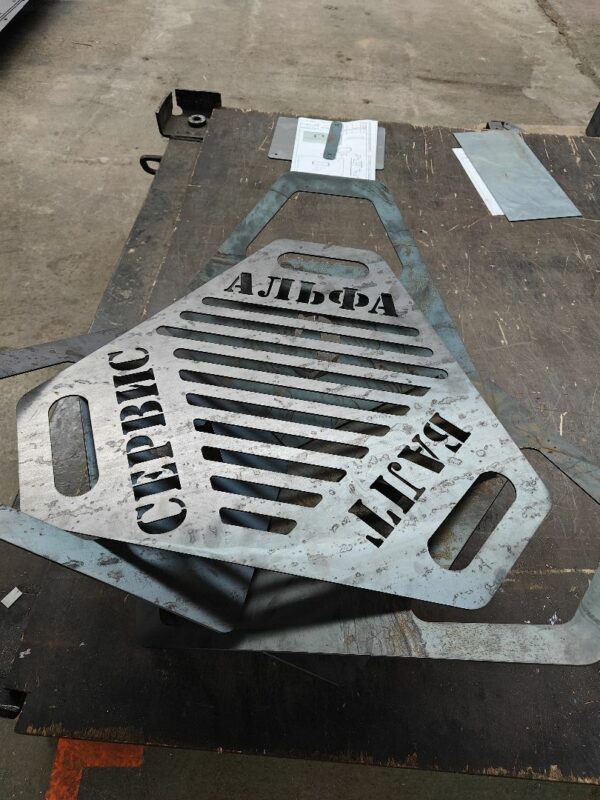 Изготовили данный мангал. На буквы не обращайте внимание, сам конструктив не изменял, только добавил буквы =) Слишком горизонтальное расположение, пазы думаю слишком широкие, попробую их укоротить до 5мм, чтобы был люфт, после сборки приложу верхнюю часть и посмотрю как ложится будет, предполагаю, что надо будет изменить либо отверстие в верхней части либо в стенках уменьшить выступ, чтобы вставлялись без проблем в верхнюю часть.