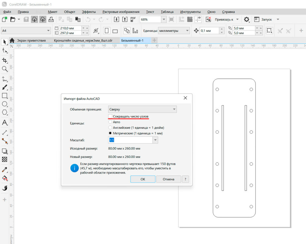 Здравствуйте! Подскажите пожалуйста,почему некоторые детали открываются с незаконченными линиями (упор,кронштейн сидения,поддон). Открываю в корел 2018