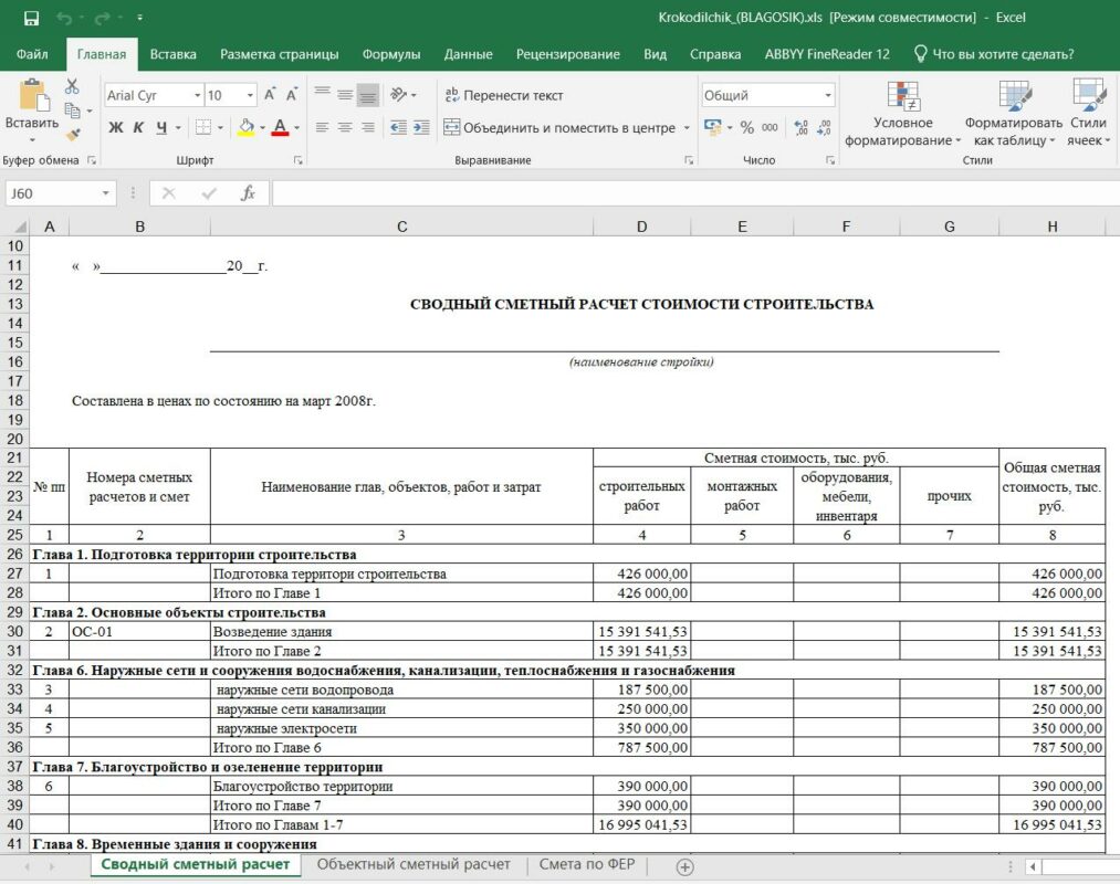 5. Экономическая часть 1 стр. которая ссылается на сметы в экселевском файле
