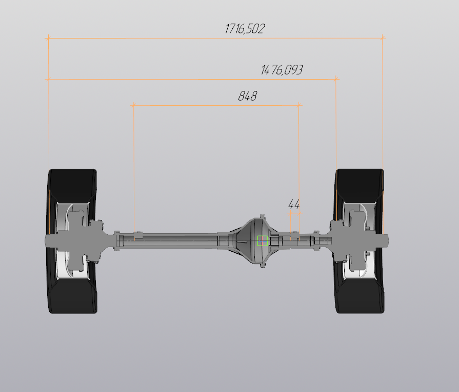 Детализация такая, что более чем достаточно для проектирования вверх. При стандартных дисках и шинах колея получается близкой к заявленной заводом. Посадочные места для рессор требуют уточнения. У меня получилось 810, у Вас 804, что не существенно и в рамках погрешности