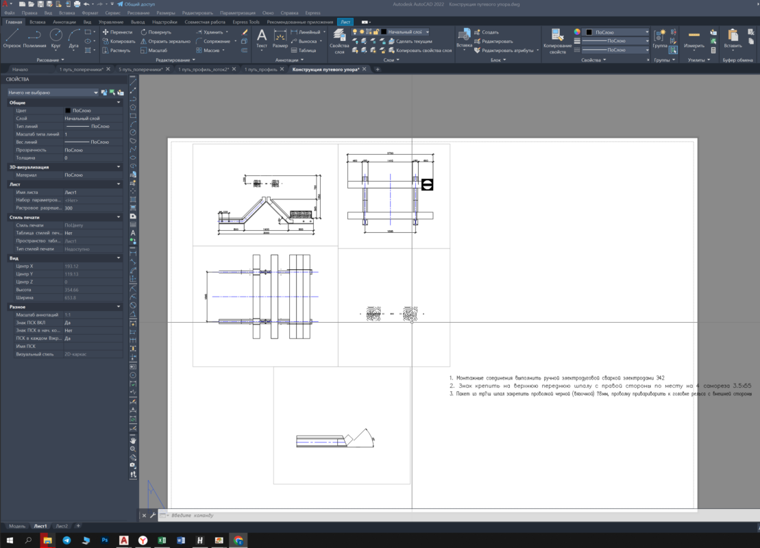 Тупиковый путевой рельсовый упор. Индивидуальный для повышенного пути без обсыпой призмы.